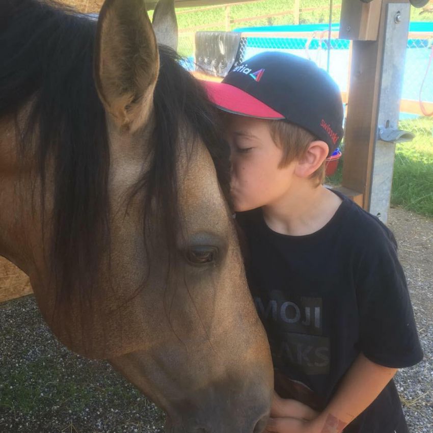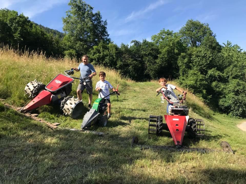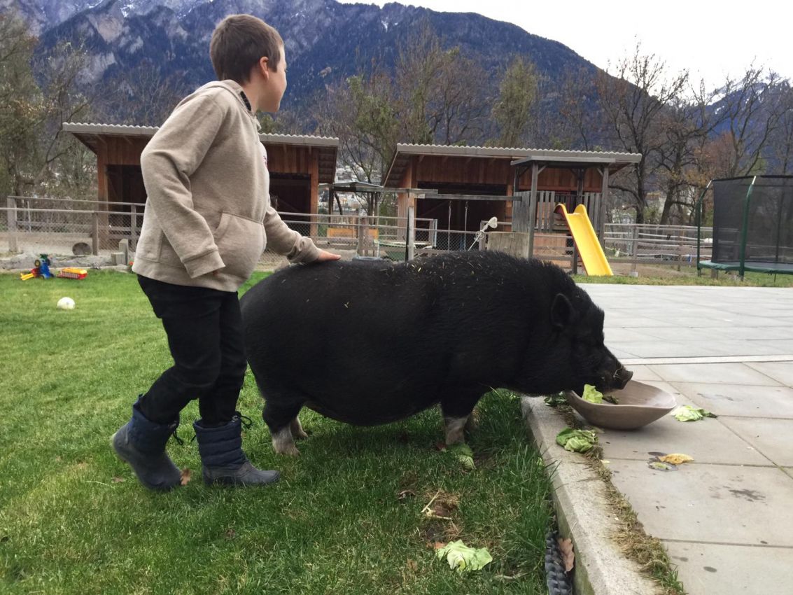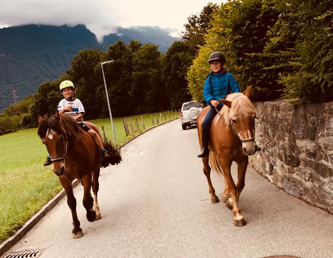 Unsere zwei Buben, Janik und Andrin, geboren 2010 und 2008, helfen voller Begeisterung mit. Sie pflegen einen liebevollen Umgang mit den Tieren, sind aber auch fasziniert von den Maschinen. Besonders Mähen ist eine der liebsten Beschäftigungen.